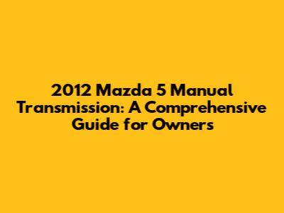 Understanding Your 2012 Mazda 5 Manual Transmission