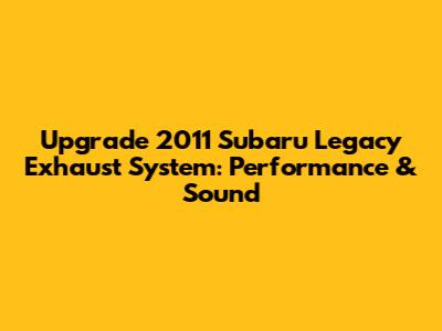 Upgrade 2011 Subaru Legacy Exhaust System: Performance & Sound