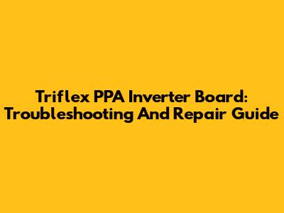 Triflex PPA Inverter Board: Troubleshooting And Repair Guide