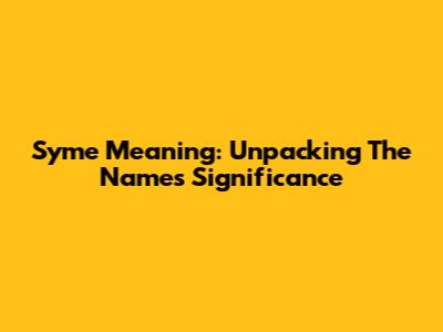 Syme Meaning: Unpacking The Name's Significance