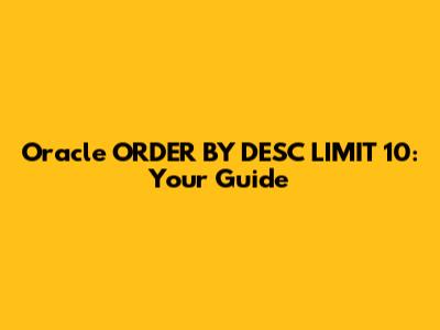 Oracle ORDER BY DESC LIMIT 10: Your Guide