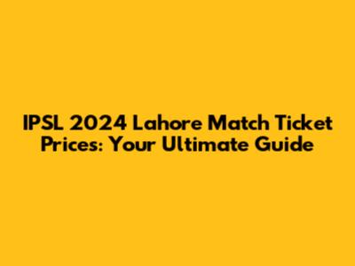 IPSL 2024 Lahore Match Ticket Prices: Your Ultimate Guide