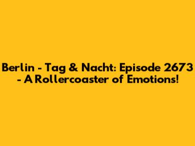 Episode 2673 of Berlin - Tag & Nacht was a rollercoaster of emotions. With relationship drama, career challenges, and unexpected alliances, this episode had something for everyone. From heartwarming moments to shocking revelations, this episode delivered. The writers kept the audience at the edge of their seats. The characters' struggles felt authentic, and their triumphs were inspiring. Whether you're a long-time fan or a newcomer, this episode is a must-watch. If you are a fan, you are ready for more. We can't wait to see what happens next! What will they do? How will they react? Berlin - Tag & Nacht always delivers.
