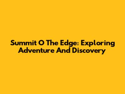 Summit O The Edge: Exploring Adventure And Discovery