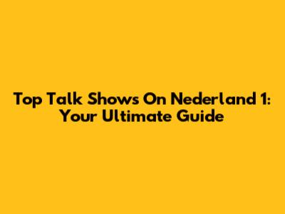 Top Talk Shows On Nederland 1: Your Ultimate Guide