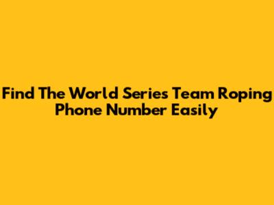 Find The World Series Team Roping Phone Number Easily