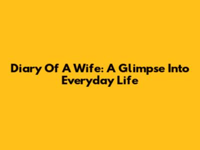 Diary Of A Wife: A Glimpse Into Everyday Life