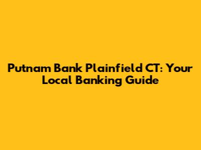 Putnam Bank Plainfield CT: Your Local Banking Guide