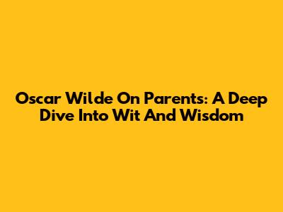 Oscar Wilde On Parents: A Deep Dive Into Wit And Wisdom