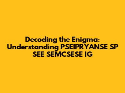 Have you ever stumbled upon an acronym or abbreviation that left you scratching your head? Acronyms, while intended to simplify communication, can sometimes create confusion, especially when they are not widely known. Today, we're diving deep into a particularly perplexing string of letters: PSEIPRYANSE SP SEE SEMCSESE IG. This isn't your everyday acronym, and understanding it requires a bit of detective work. So, let's put on our thinking caps and embark on this journey of decoding.