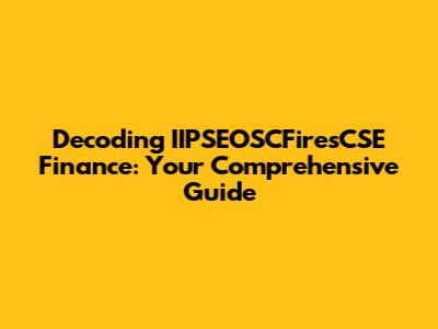 Hey guys! Let's dive deep into the fascinating world of IIPSEOSCFiresCSE finance! This might sound like a mouthful, but don't worry, we're going to break it down step by step to make it super easy to understand. We'll explore what each part of this term means, how they connect, and why it's important for you to know about them. Whether you're a seasoned finance pro or just starting out, this guide is designed to provide you with valuable insights. So, grab a coffee, sit back, and let's get started. We're going to make sure that by the end of this, you'll be able to not only understand what IIPSEOSCFiresCSE finance is, but also grasp its significance in the broader financial landscape. The goal is to equip you with the knowledge to make informed decisions and better navigate the complexities of financial markets. Understanding these concepts can be a game-changer, helping you to evaluate investment opportunities, manage risk, and plan for your financial future. This comprehensive guide will cover everything from the basic definitions to the more intricate details, ensuring that you have a solid foundation of knowledge. We'll dissect each component, look at real-world examples, and discuss how these elements interact to shape financial outcomes. This isn't just about memorizing terms; it's about building a practical understanding that you can apply in various financial scenarios. We'll also touch upon the implications of these concepts on the global economy, providing you with a broader perspective. Let’s get you up to speed so you can confidently discuss, analyze, and apply these concepts in your personal and professional life. We aim to clarify any confusion and transform complex jargon into actionable insights that you can use. This will be the perfect starting point to understand the core elements. Let’s make the learning process engaging and informative. Are you ready?