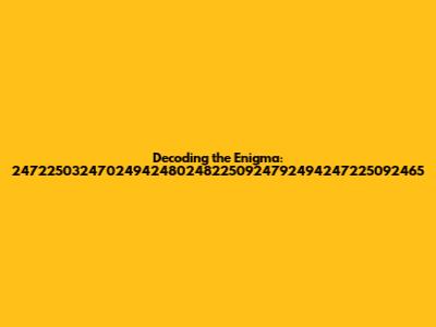 Navigating the digital landscape, we often encounter strings of characters that seem like pure gibberish. These enigmatic sequences, like the one we're tackling today – 247225032470249424802482250924792494247225092465 – can be anything from random identifiers to coded messages. Understanding what these strings represent requires a blend of curiosity, technical know-how, and a dash of investigative spirit. Our journey begins with dissecting this seemingly random sequence to uncover its potential meanings and origins.