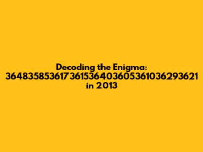 Okay, so we’ve got this massive number: 364835853617361536403605361036293621. What could it possibly mean? Let's brainstorm some ideas. It could be a timestamp, a unique identifier, or even a reference to a specific event. The possibilities are endless! One potential interpretation is that it's a timestamp. In the digital age, timestamps are used to record when an event occurred, often down to the millisecond. This number might represent the number of seconds or milliseconds that have elapsed since a specific point in time, such as the Unix epoch (January 1, 1970). If that's the case, we could convert this number into a human-readable date and time to see if it aligns with any significant events in 2013. Another possibility is that this number serves as a unique identifier for a particular transaction, record, or piece of data. In large databases and systems, unique identifiers are used to distinguish one entry from another. This number could be a key in a database, a tracking number for a shipment, or an identifier for a financial transaction. To explore this possibility, we would need to investigate databases or systems that were relevant in 2013 and see if this number matches any existing records. Alternatively, this number might be a code that represents a specific event, concept, or piece of information. Codes are often used to compress data, encrypt messages, or categorize items. This number could be a cipher that needs to be decrypted, or it could be a code that maps to a specific entry in a lookup table. To decipher this code, we would need to identify the coding system used and find the corresponding decryption key or lookup table. The possibilities are vast, but by considering these different interpretations, we can narrow down our search and focus on the most promising avenues. Let's keep an open mind and explore each of these possibilities as we continue our quest to unlock the meaning of this mysterious number.