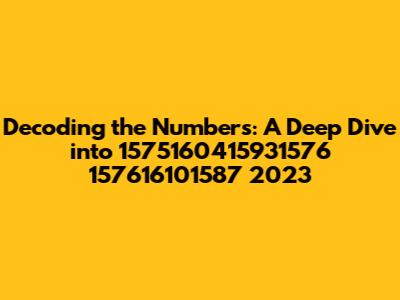 Hey everyone, let's break down this fascinating string of numbers: 1575160415931576 157616101587 2023. Sounds cryptic, right? But trust me, we're going to unravel its potential meaning and significance. This could be anything from a unique identifier, a timestamp, or even a code related to a specific event that happened in 2023. So, buckle up, and let's start this exciting journey of discovery. Understanding these types of numerical sequences can often lead to uncovering hidden patterns and insights, which is pretty cool, if you ask me. I hope you guys are ready to dive in.