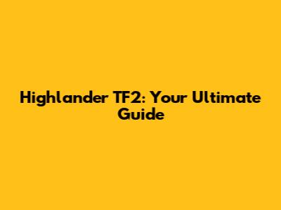 Highlander TF2: Your Ultimate Guide