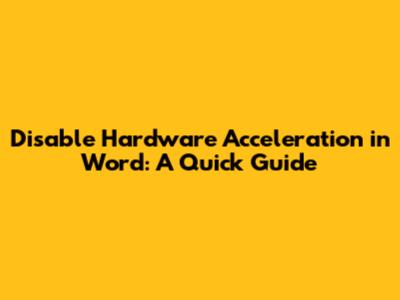 How to Disable Hardware Acceleration in Word