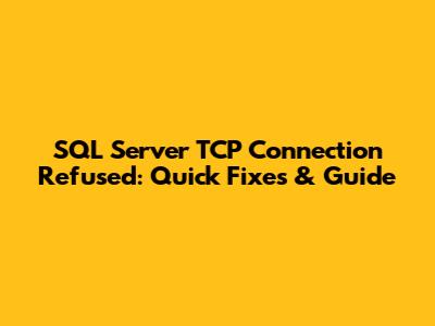 SQL Server TCP Connection Refused: Quick Fixes & Guide