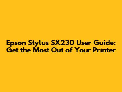 By following this user guide, you should now be well-equipped to get the most out of your Epson Stylus SX230 printer. Happy printing, scanning, and copying!