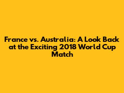 Hey sports fans! Let's rewind the clock and dive into a thrilling match from the 2018 FIFA World Cup: France versus Australia. This game was more than just a contest; it was a showcase of skill, strategy, and sheer determination. As we analyze this epic encounter, we'll dissect the key moments, star performances, and the tactical battles that unfolded on that memorable day. So, grab your jerseys, settle in, and let's relive the magic of France versus Australia!