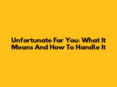 Unfortunate For You: What It Means And How To Handle It