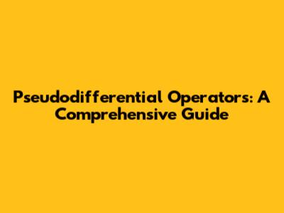 Pseudodifferential Operators: A Comprehensive Guide