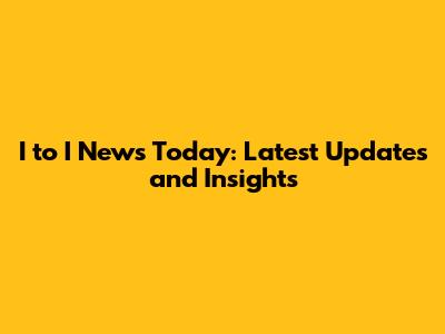 Key Updates in I to I News Today