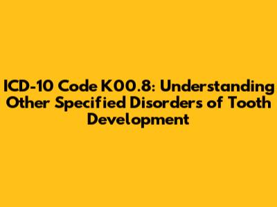 Hey guys! Ever wondered about those quirky dental conditions that don't quite fit into neat little boxes? Well, buckle up because we're diving deep into the world of ICD-10 code K00.8, which covers other specified disorders of tooth development. This code is like the 'catch-all' for those unique dental anomalies that your dentist might scratch their head over for a moment before diagnosing. Understanding this code can help you grasp the variety of ways teeth can develop differently and why proper diagnosis is super important.