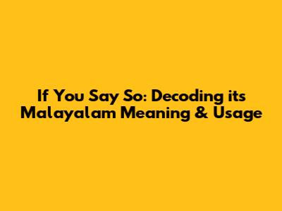 Hey folks, ever wondered about the exact meaning of "If you say so" and how it translates to Malayalam? You're in the right place! We're diving deep into this common phrase, exploring its various shades of meaning, and figuring out the best ways to use it in Malayalam. This phrase, seemingly simple, carries a bunch of hidden layers, and understanding it can seriously boost your Malayalam communication game. Let's get started, shall we? This guide breaks down the core meaning, the nuances, and the best ways to use "If you say so" in Malayalam. We'll explore the closest translations, the different contexts where it pops up, and even a few cultural insights to help you nail the delivery.
