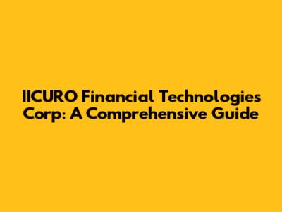 Hey there, financial tech enthusiasts! Let's dive deep into IICURO Financial Technologies Corp, a name you might have stumbled upon in the ever-evolving world of fintech. IICURO, or as they are known, is making waves, and we're here to break down what they are all about, what they do, and why they might be worth keeping an eye on. Buckle up, because we're about to embark on a journey through the ins and outs of this interesting company, their services, and their potential impact on the financial landscape. We'll explore their core offerings, examine their business model, and try to understand how they are positioning themselves in a competitive market. This article aims to provide a comprehensive overview, so you'll have a solid understanding of IICURO by the time we're done. So, let’s get started, shall we?