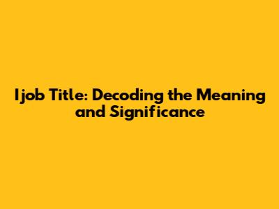 Demystifying the Ijob Title: What Does It Really Mean?
