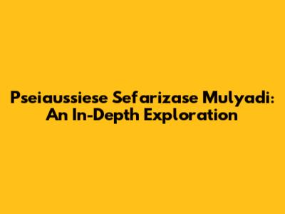 Pseiaussiese Sefarizase Mulyadi: An In-Depth Exploration