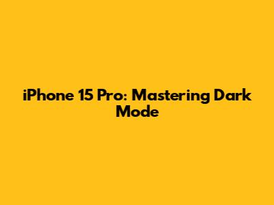 Enabling Dark Mode on Your iPhone 15 Pro: Simple Steps