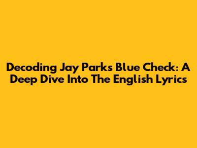 Decoding Jay Park's 'Blue Check': A Deep Dive Into The English Lyrics