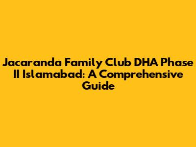 Hey there, folks! Ever heard of the Jacaranda Family Club in DHA Phase II, Islamabad? If you're looking for a top-notch family destination, you've stumbled upon the right place. This article is your ultimate guide, covering everything you need to know about this fantastic club. We'll dive into the amenities, the vibe, and what makes it a go-to spot for families in Islamabad. So, grab a cup of coffee, sit back, and let's explore the Jacaranda Family Club!