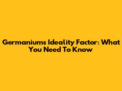 Germanium's Ideality Factor: What You Need To Know