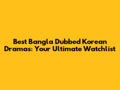 Best Bangla Dubbed Korean Dramas: Your Ultimate Watchlist
