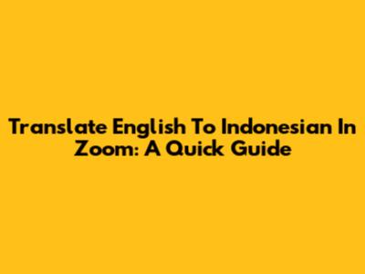 Translate English To Indonesian In Zoom: A Quick Guide
