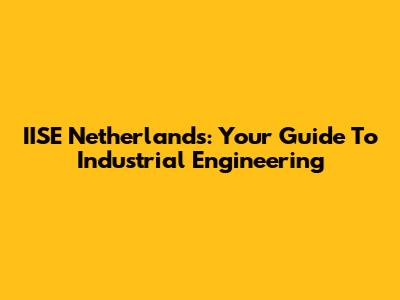 IISE Netherlands: Your Guide To Industrial Engineering