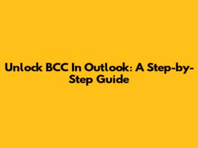 Unlock BCC In Outlook: A Step-by-Step Guide