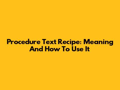 Procedure Text Recipe: Meaning And How To Use It