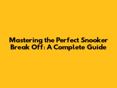 Advanced Techniques and Strategies for the Perfect Snooker Break Off