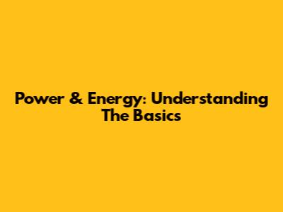Power & Energy: Understanding The Basics