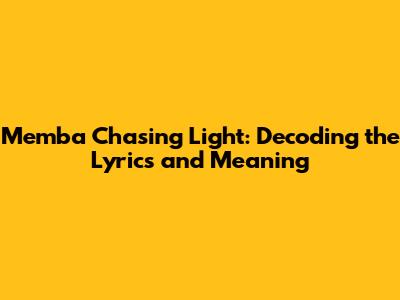 Hey music lovers! Have you ever found yourself completely captivated by a song, drawn in by its melody and intrigued by its lyrics? Today, we’re diving deep into Memba's mesmerizing track, "Chasing Light." This song isn't just a tune; it's an experience, a journey, and we're here to unpack its lyrical genius and explore the emotions it evokes. So, grab your headphones, turn up the volume, and let's get started!