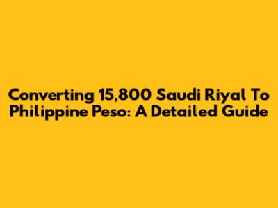 Converting 15,800 Saudi Riyal To Philippine Peso: A Detailed Guide