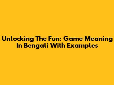 Unlocking The Fun: Game Meaning In Bengali With Examples