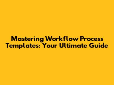 Mastering Workflow Process Templates: Your Ultimate Guide