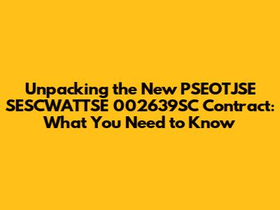 Hey everyone! So, there's been a buzz around the new PSEOTJSE SESCWATTSE 002639SC contract, and I know a lot of you are wondering what exactly it entails. Well, buckle up, because we're about to dive deep into this and break down all the nitty-gritty details. This isn't just any old contract; it's a significant development that could impact a lot of folks, and understanding it is key. We'll be covering the core components, what makes this contract unique, and why it's such a big deal in the industry. So, if you're involved in any way, or just curious about the latest happenings in the world of contracts, this article is for you. We’re going to make sure you walk away feeling informed and ready to discuss it with confidence. Let's get started!