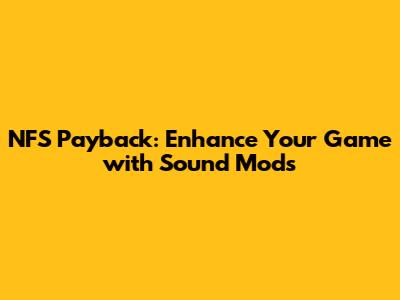 The Future of Sound Mods in NFS Payback