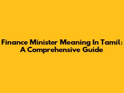 Finance Minister Meaning In Tamil: A Comprehensive Guide