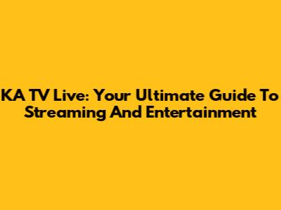 KA TV Live: Your Ultimate Guide To Streaming And Entertainment